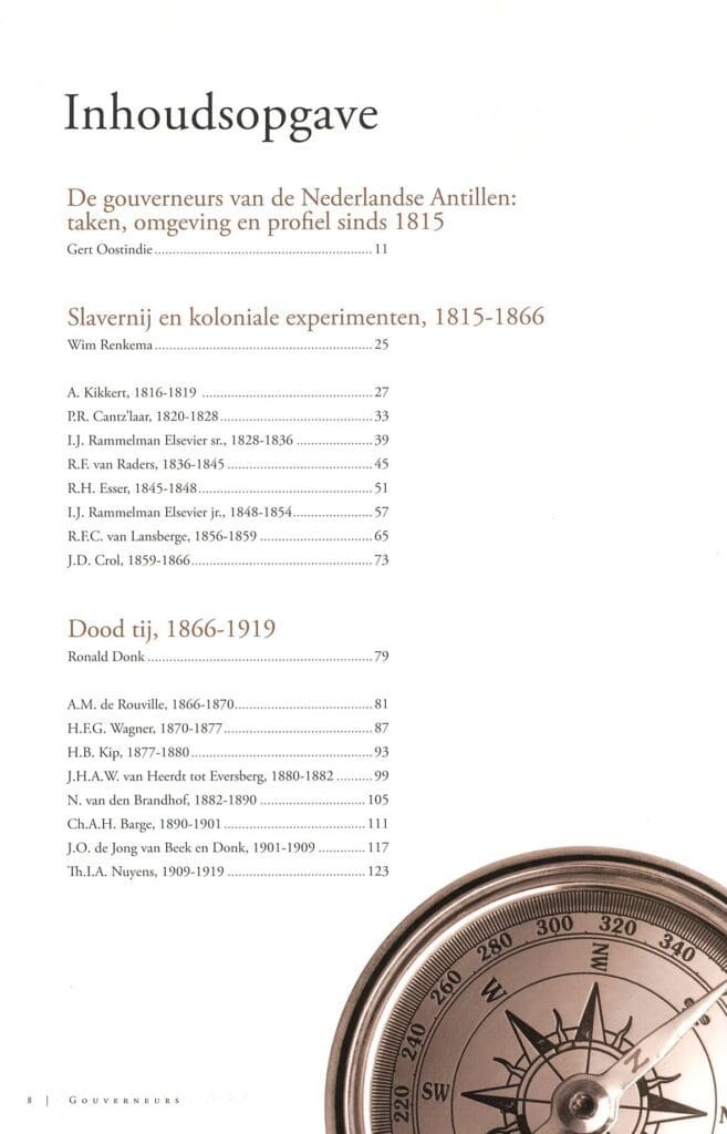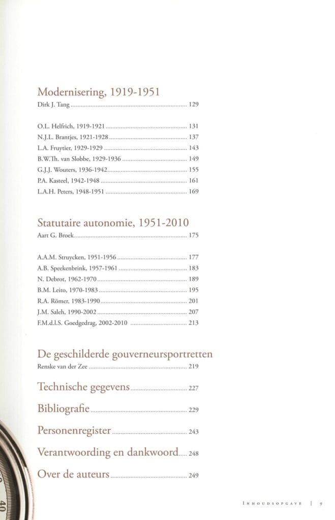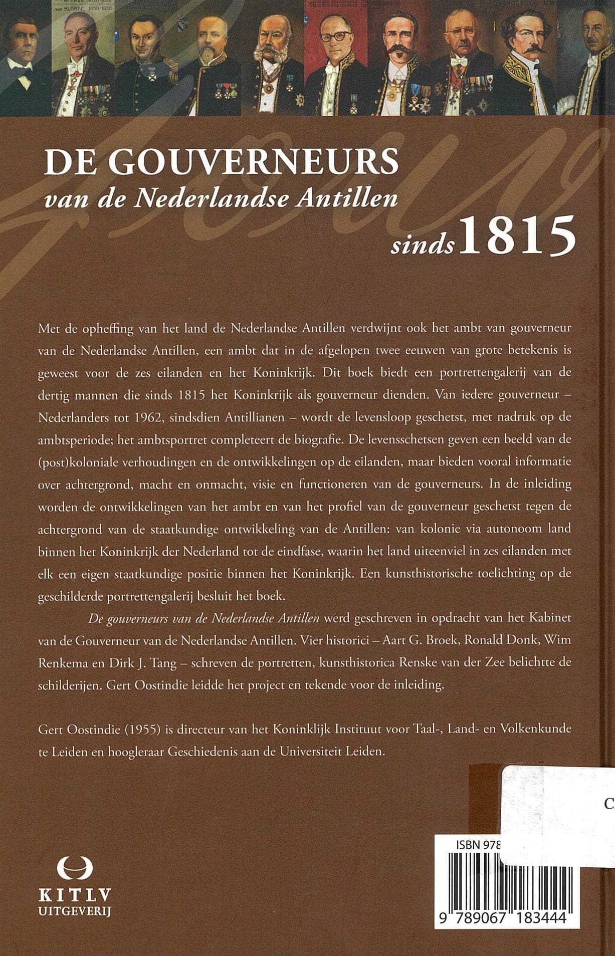 Met de opheffing van het land de Nederlandse Antillen verdwijnt ook het ambt van gouverneur van de Nederlandse Antillen, een ambt dat in de afgelopen twee eeuwen van grote betekenis is geweest voor de zes eilanden en het Koninkrijk. Dit boek biedt een portrettengalerij van de dertig mannen die sinds 1815 het Koninkrijk als gouverneur dienden. Van iedere gouverneur – Nederlanders tot 1962, sindsdien Antillianen – wordt de levensloop geschetst, met nadruk op de ambtsperiode; het ambtsportret completeert de biografie. De levensschetsen geven een beeld van de (post)koloniale verhoudingen en de ontwikkelingen op de eilanden, maar bieden vooral informatie over achtergrond, macht en onmacht, visie en functioneren van de gouverneurs. In de inleiding worden de ontwikkelingen van het ambt en van het profiel van de gouverneur geschetst tegen de achtergrond van de staatkundige ontwikkeling van de Antillen: van kolonie via autonoom land binnen het Koninkrijk der Nederland tot de eindfase, waarin het land uiteenviel in zes eilanden met elk een eigen staatkundige positie binnen het Koninkrijk. Een kunsthistorische toelichting op de geschilderde portrettengalerij besluit het boek.