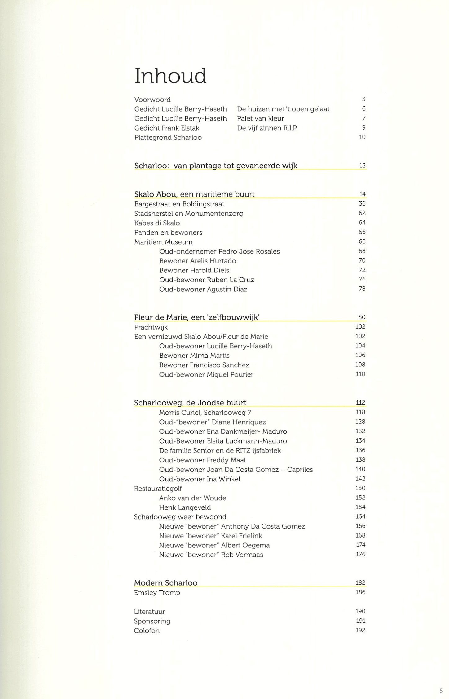 Geen wijk op Curaçao is zo divers, contrastrijk en kleurrijk als de wijk Scharloo. Mensen uit vele verschillende culturen, uiteenlopende milieus, arm en rijk. Krotten naast monumentale panden. Rijkdom naast verval. Hier het straatleven, een straat verderop het zakenleven. Hier harde muziek en vertier, daar de stilte. Maritiem vertier naast de voormalige Joodse wijk. Kinderen van voor de Tweede Wereldoorlog in hun oude familiehuis. Na jaren teruggekeerd. Het verleden mengt zich met het heden. Allemaaal tegenstellingen. Men kan niet met, maar ook niet zonder elkaar. Verleden, heden en toekomst kruisen elkaar. Een herboren Scharloo. Scharloo Renaissance.