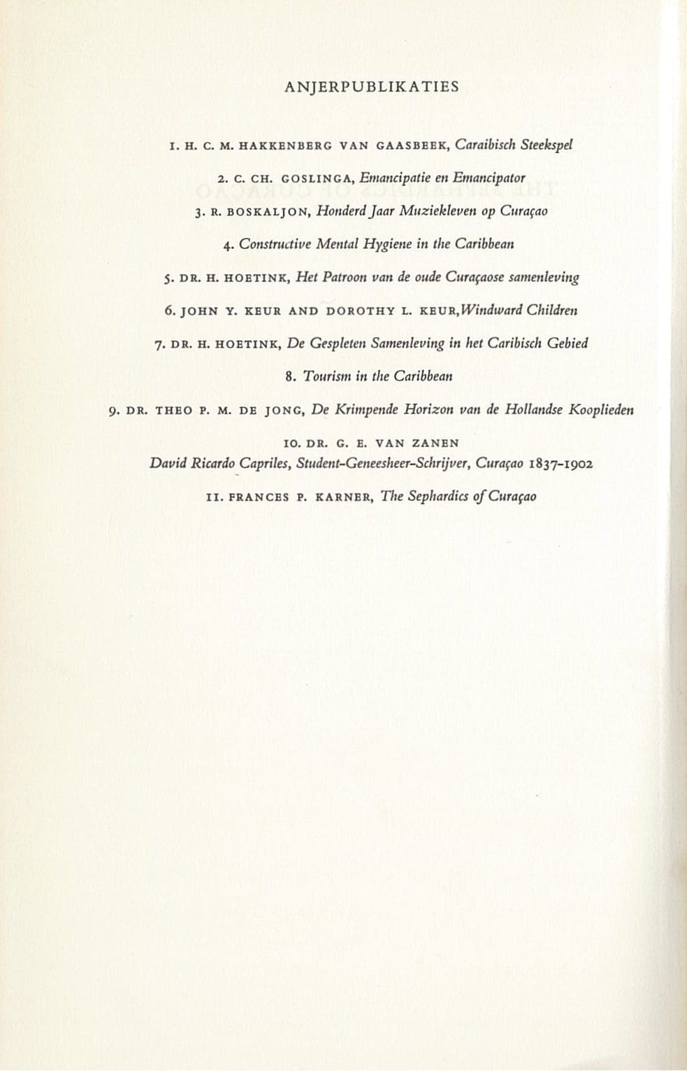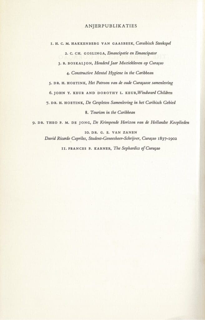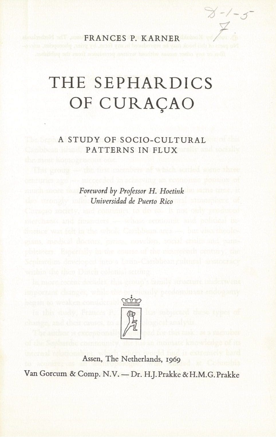 ‘The Sephardics of Curaçao’ offers an in-depth study of the Sephardic Jewish community in Curaçao, which has played a significant role in the island’s economic, social, and cultural development since the 17th century. Through anthropological analysis, Frances P. Karner examines the origins of this community, their migration from the Iberian Peninsula, their influence on trade in the Caribbean, and their religious and social traditions.