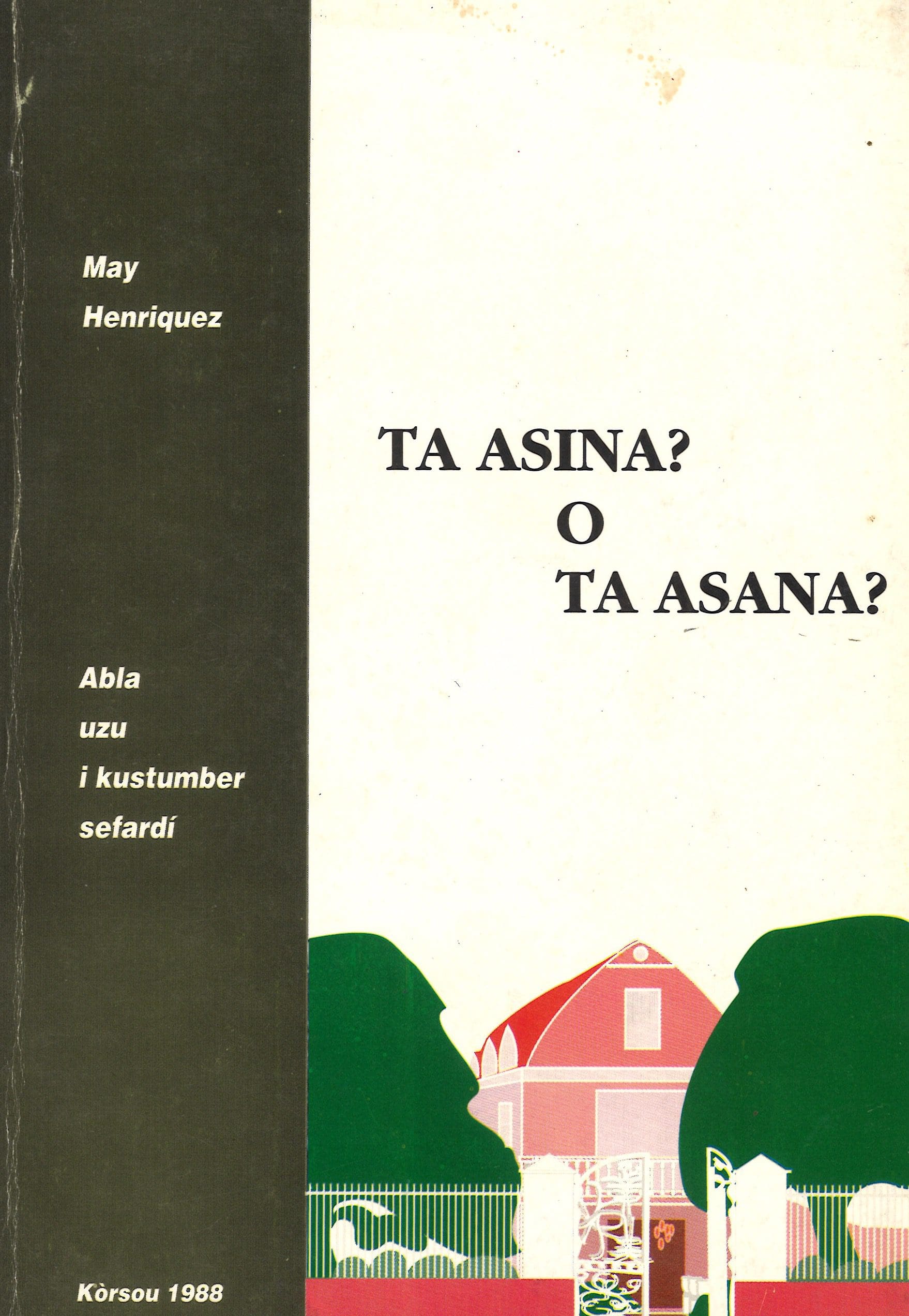 ‘Ta asina? O ta asana?’ ta un buki ku May Henriquez a skibi pa dokumentá i preservá e idioma, tradishon i manera di papia di komunidat sefardí na Kòrsou. / ‘Ta asina? O ta asana?’ is een boek van May Henriquez waarin zij op levendige en vaak humoristische wijze de taal, gebruiken en cultuur documenteert van de Sefardische gemeenschap op Curaçao.