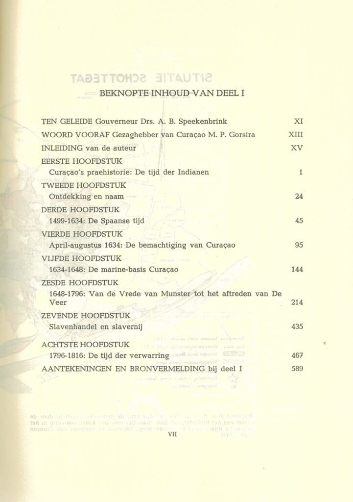 ‘Verleden, heden en toekomst hangen nauw met elkaar samen; zo nauw dat geen volk aan zijn toekomst kan bouwen zonder zich levendig van zijn verleden bewust te zijn. Het verleden van onze eilanden is voor velen nog een te zeer gesloten boek. Niet omdat men het boek der geschiedenis niet wil opslaan, maar omdat het zo moeilijk is het boek der geschiedenis in handen te krijgen. Er zijn in de loop van de jaren wel enkele overzichten van de historie der Nederlandse Antillen verschenen, maar deze zijn grotendeels slechts moeilijk toegankelijk want niet meer verkrijgbaar; zij zijn bovendien goeddeels verhouderd en onvolledig.’