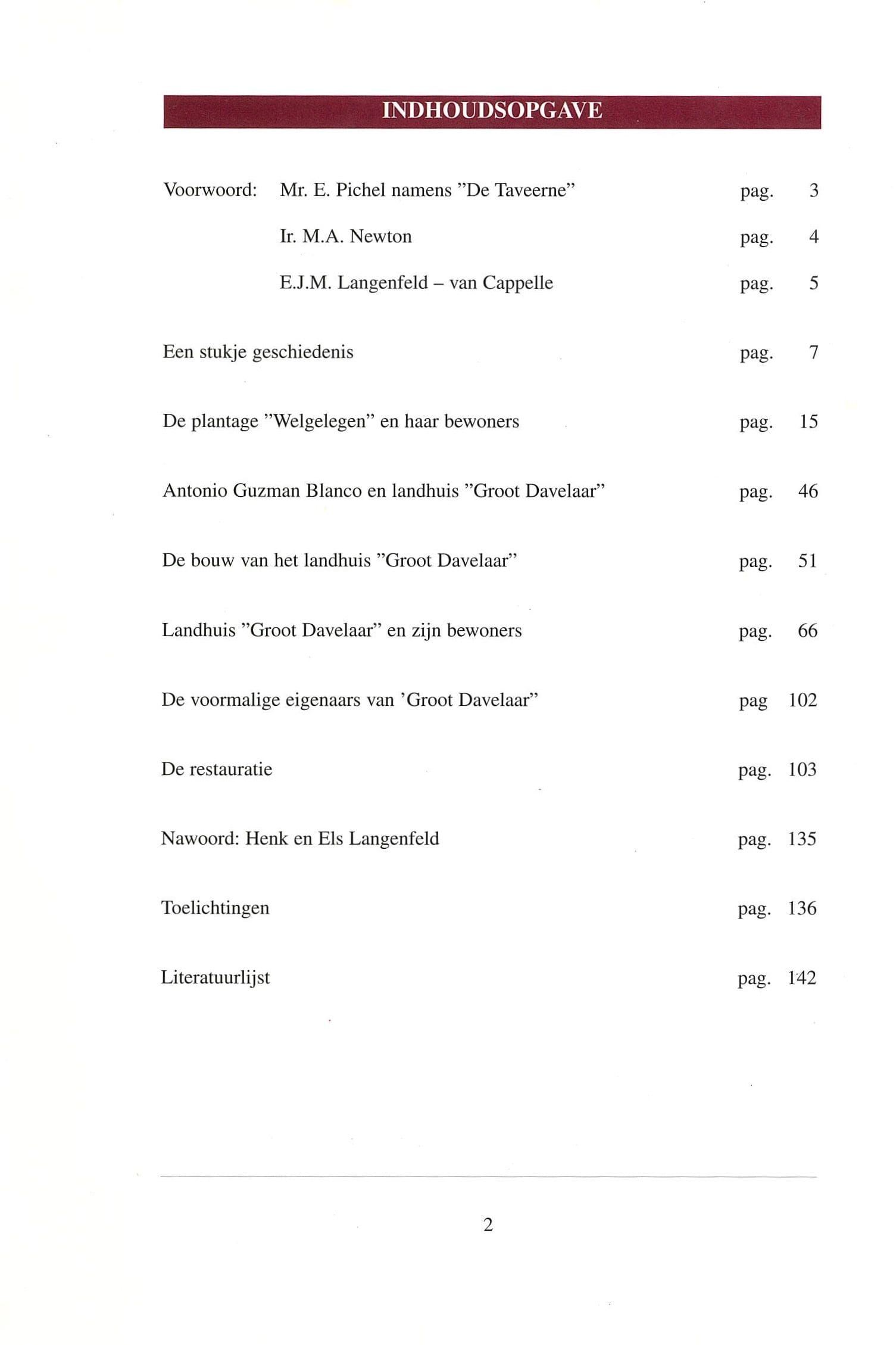 Groot Davelaar en den Plantagie Welgelegen (1732 - heden) - Inhoudsopgave