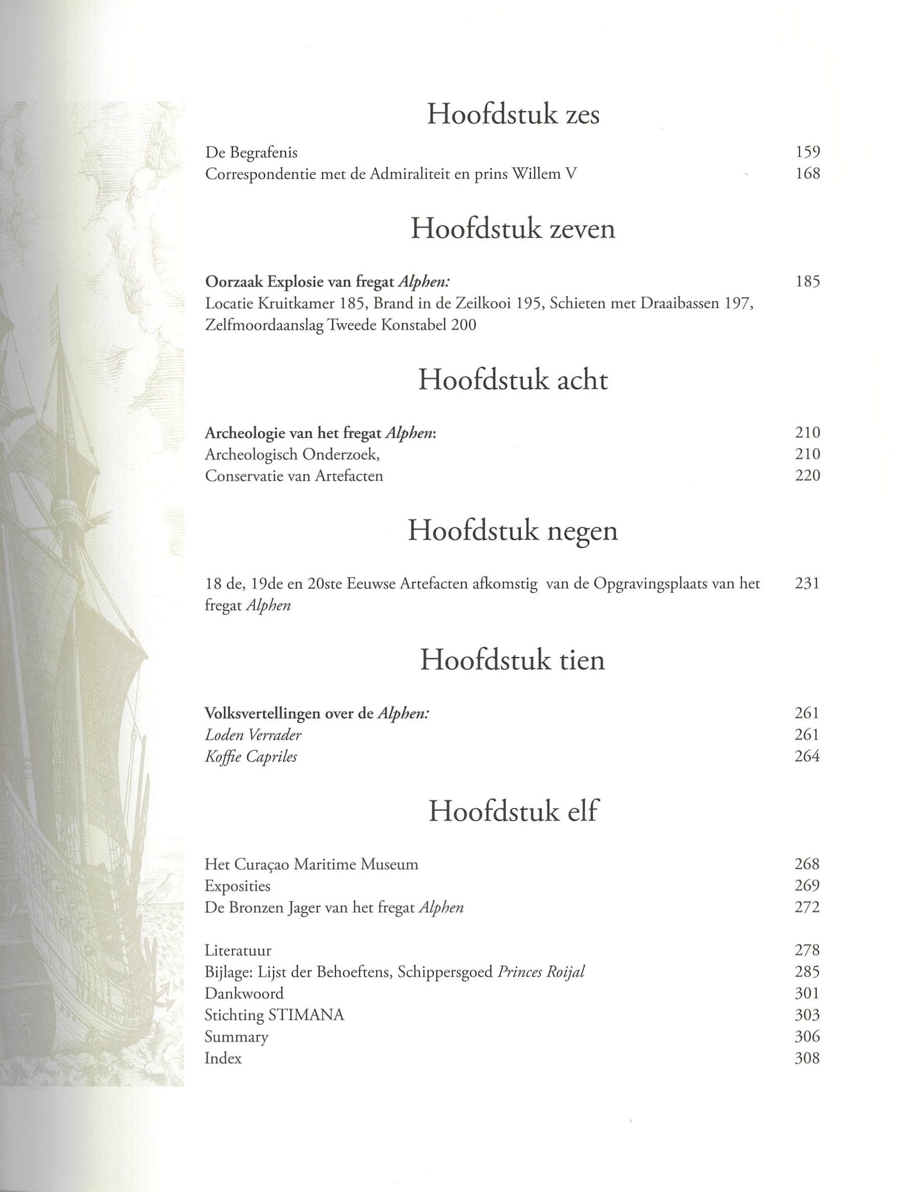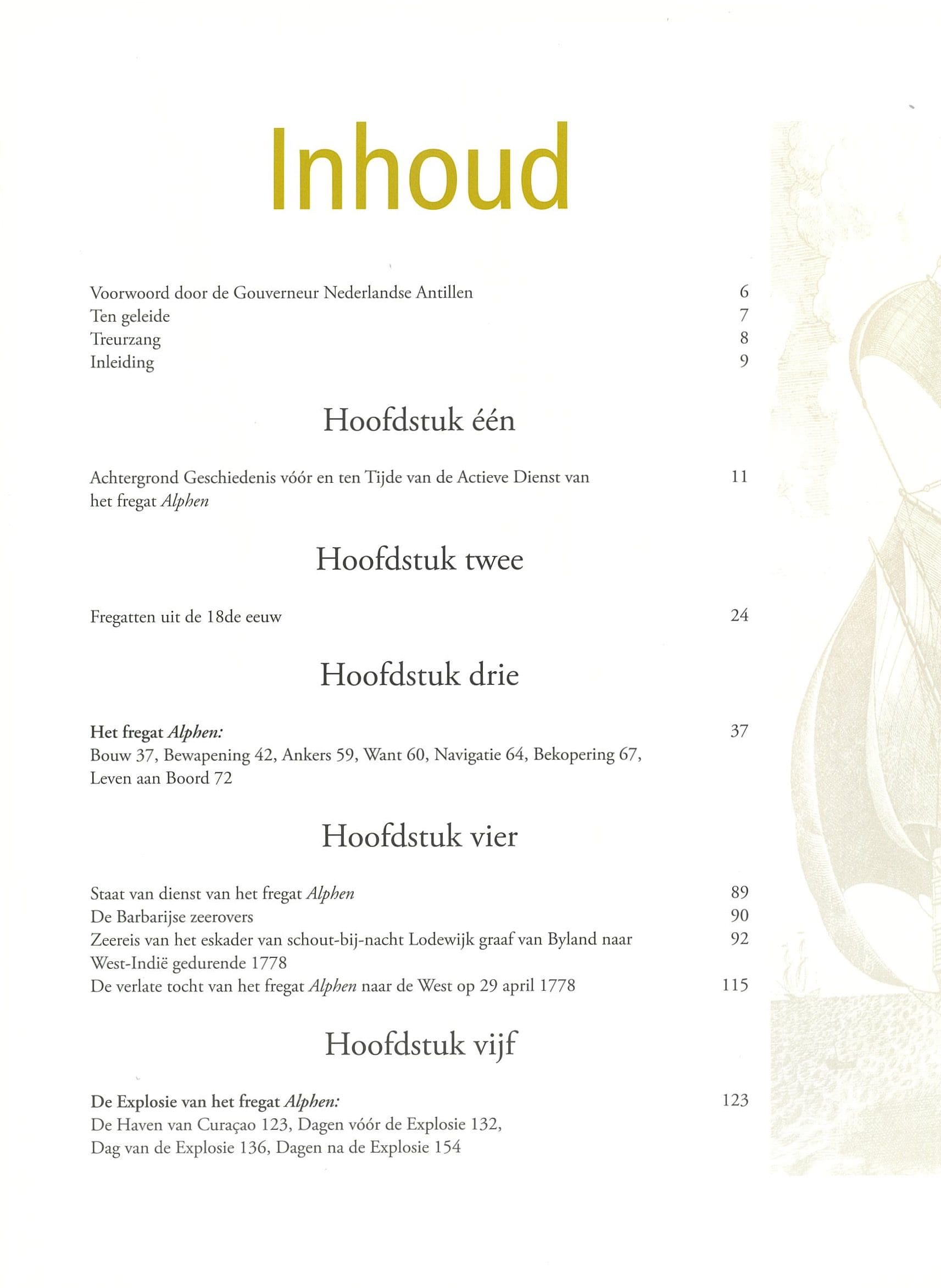 De Noodlottige Geschiedenis van het Hollandse fregat Alphen - Inhoud