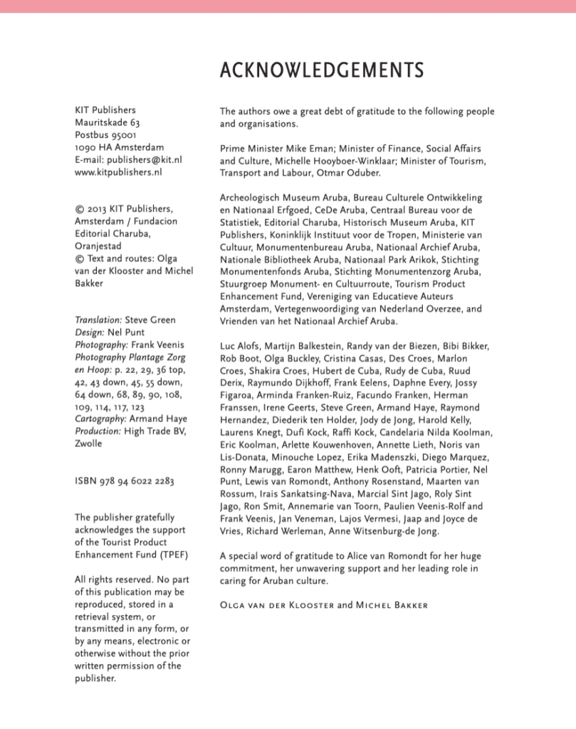 Aruba! Everyone knows this tropical island in the sun with pearly white beaches and palm trees swaying in the trade winds. But there’s more to Aruba than this. It has a fascinating history, a diverse culture and a rich architecture. Traces can still be found of the original indigenous inhabitants, and of the gold industry and aloe plantations. The island’s architectural heritage includes historic churches, a fort and a lighthouse. And you’ll come across the island’s characteristic cunucu houses wherever you go. This guide will lead you through this wonderful cultural heritage along three routes: one driving route around the entire island, and two walking routes in the cities of Oranjestad and San Nicolas. You will discover places known only to insiders. And of course this guide also provides historical backgrounds and practical information.