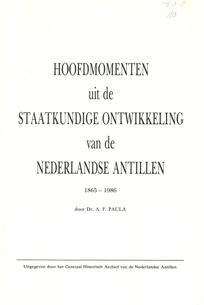 Hoofdmomenten uit de Staatkundige Onwtikkeling van de Nederlandse Antillen 1865 - 1986 - Title Page