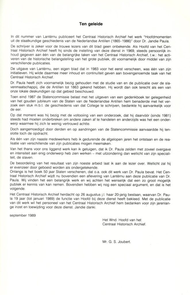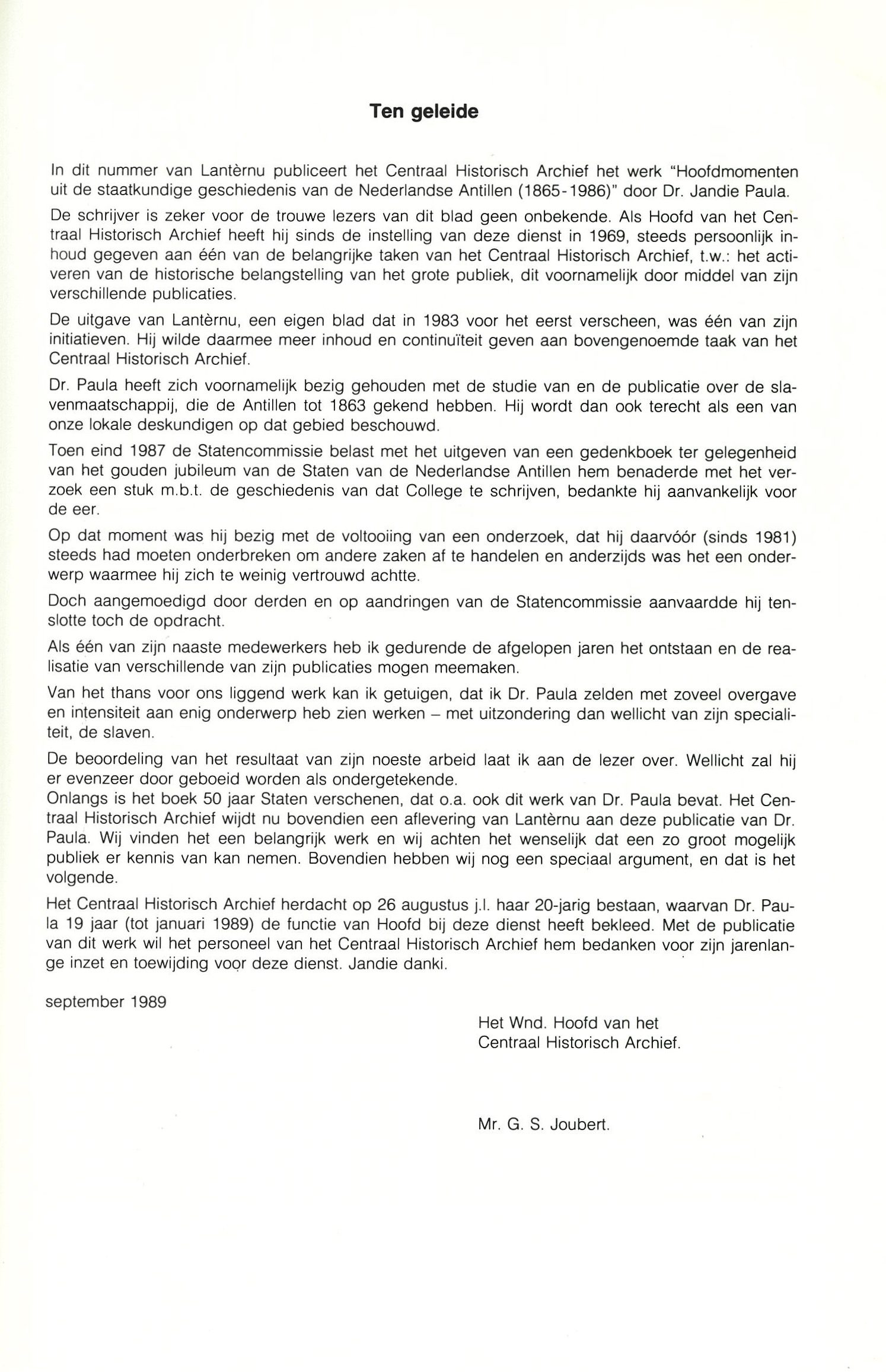 Hoofdmomenten uit de Staatkundige Onwtikkeling van de Nederlandse Antillen 1865 - 1986 - Ten geleide