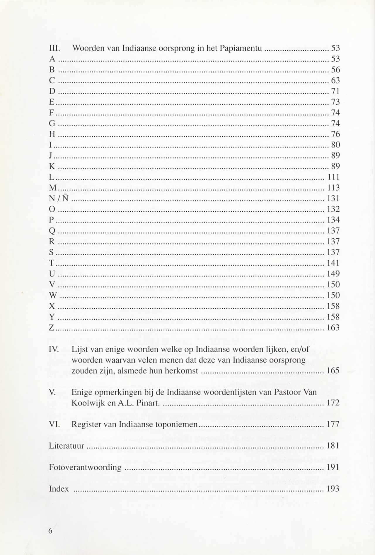 IV. Lijst van enige woorden welke op Indiaanse woorden lijken, en/of woorden waarvan velen menen dat deze van Indiaanse oorsprong zouden zijn, alsmede hun herkomst ….. 165