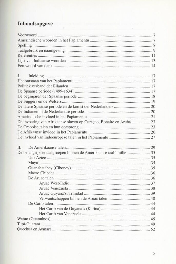 III. Woorden van Indiaanse oorsprong in het Papiamentu ….. 53