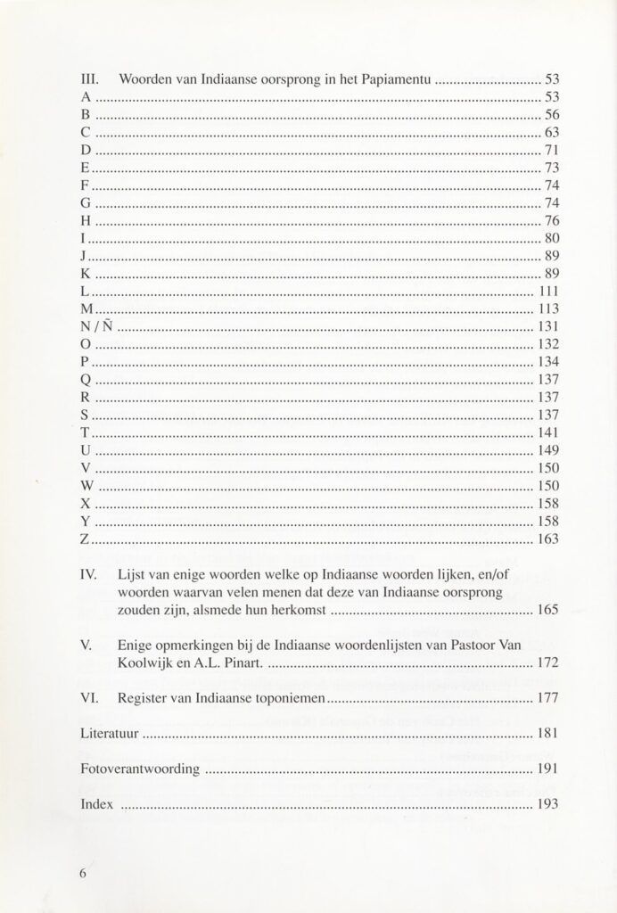 IV. Lijst van enige woorden welke op Indiaanse woorden lijken, en/of woorden waarvan velen menen dat deze van Indiaanse oorsprong zouden zijn, alsmede hun herkomst ….. 165