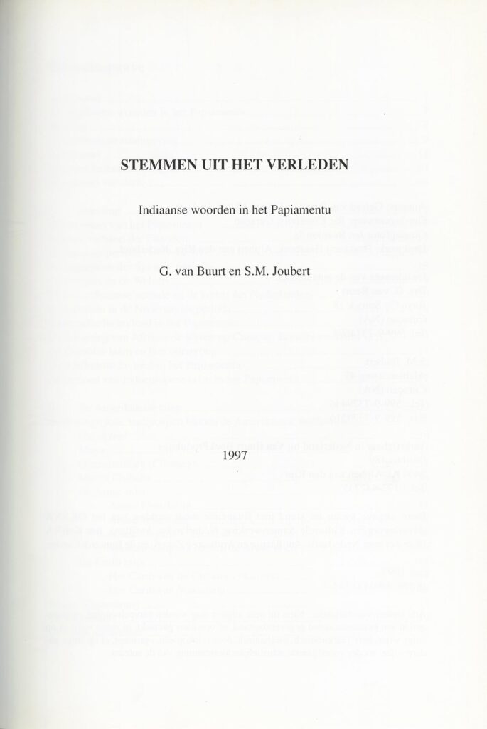 Het boek ‘Stemmen uit het verleden: Indiaanse woorden in het Papiamentu’ van Gerard van Buurt en Sidney M. Joubert, gepubliceerd in 1997, onderzoekt de invloed van inheemse talen op het Papiamentu. Het biedt een uitgebreide analyse van woorden van Indiaanse oorsprong die in deze Creoolse taal zijn opgenomen. Dit werk is essentieel voor iedereen die geïnteresseerd is in de etymologie van het Papiamentu en de culturele geschiedenis van het Caribisch gebied.