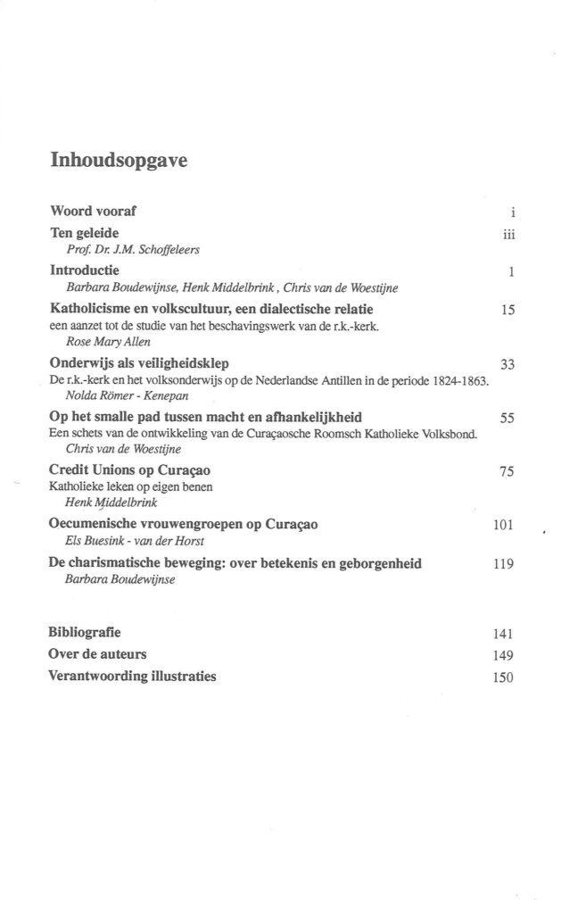 Het boek ‘Kerkwandel & lekenhandel: de rooms-katholieke kerk op Curaçao’ is een bundel onder redactie van Barbara Boudewijnse, Henk Middelbrink en Chris van de Woestijne, gepubliceerd in 1992. Het boek biedt een kritische analyse van de rol van de rooms-katholieke kerk op Curaçao, met bijzondere aandacht voor de interactie tussen kerkelijke autoriteiten en de lekenbevolking. Het onderzoekt hoe de kerk invloed uitoefende op het dagelijks leven, onderwijs en sociale structuren op het eiland. De auteurs belichten de spanningen tussen kerkelijk gezag en lekeninitiatieven, en hoe deze dynamiek de ontwikkeling van de Curaçaose samenleving heeft beïnvloed.