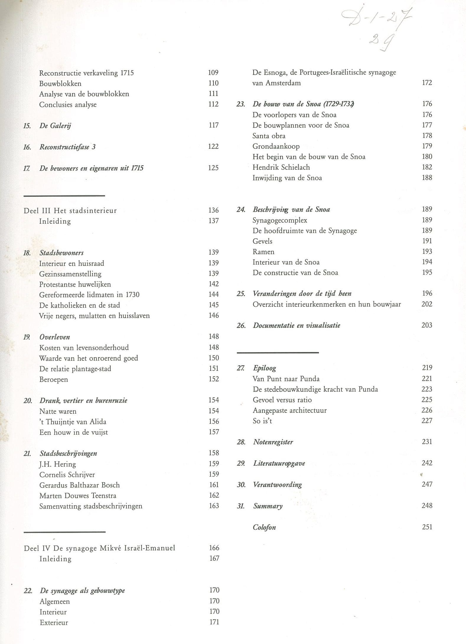 Van Punt en Snoa laat u op boeiende wijze de stedebouwkundige groei en de architectuur van deze unieke oude stad en haar synagoge zien en laat u tevens kennis maken met de mensen die Willemstad tot ontwikkeling brachten. Stadskaarten, foto’s, tekeningen, computervisualisaties en demografische gegevens maken dit boek tevens tot een onmisbaar naslagwerk voor al diegenen die zich met Willemstad en het eiland Curaçao verbonden voelen.