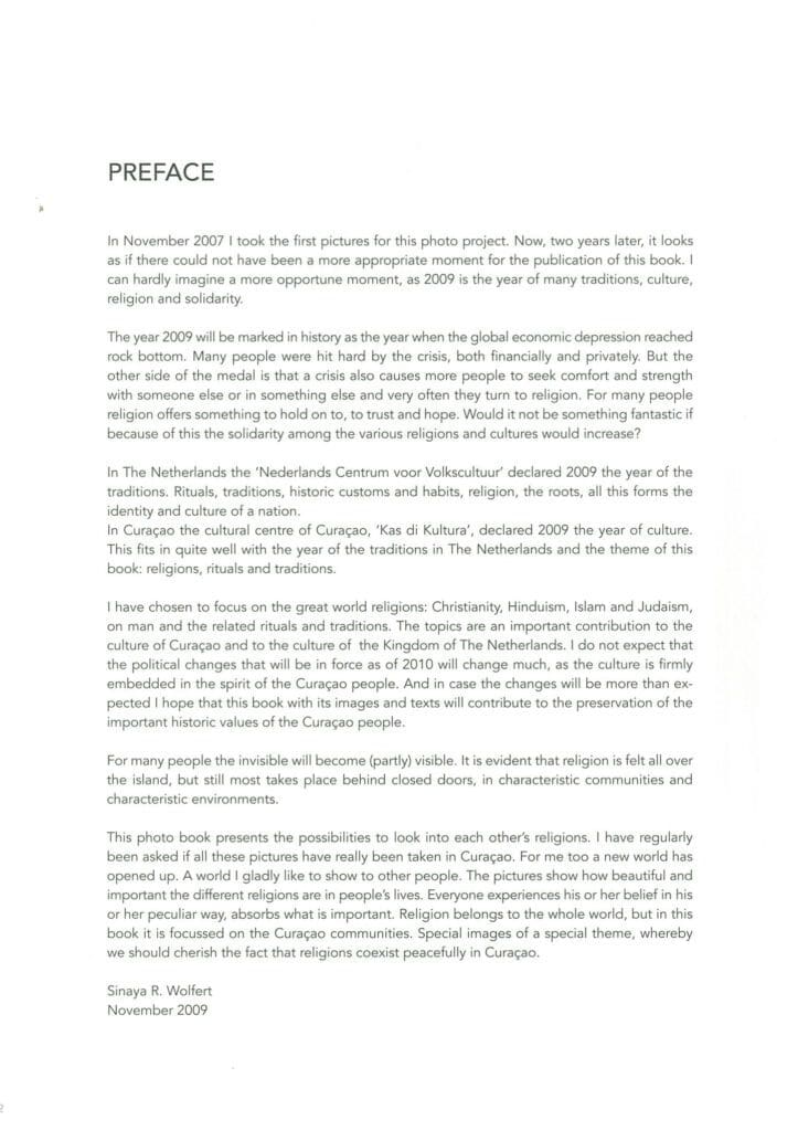 Sinaya’s autonomous projects are reflected in her photo’s. This photo book Curaçao Religions, Rituals and Traditions presents a picture of the hidden world of “Religious Curaçao”, where the various religions still co-exist peacefully.