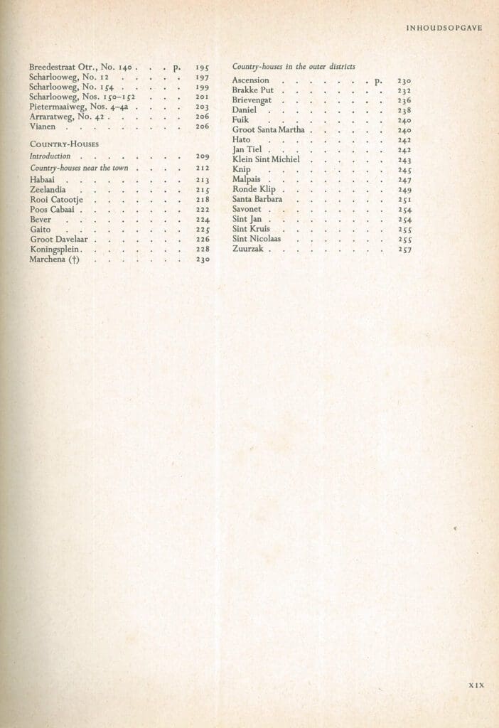 In dit werk heeft Prof. Dr. M.D Ozinga belangrijke monumenten van Curaçao vastgelegd in woord en beeld. Het boek werd gepubliceerd in 1959 en is een van de standaardwerken over gebouwd erfgoed op Curaçao.