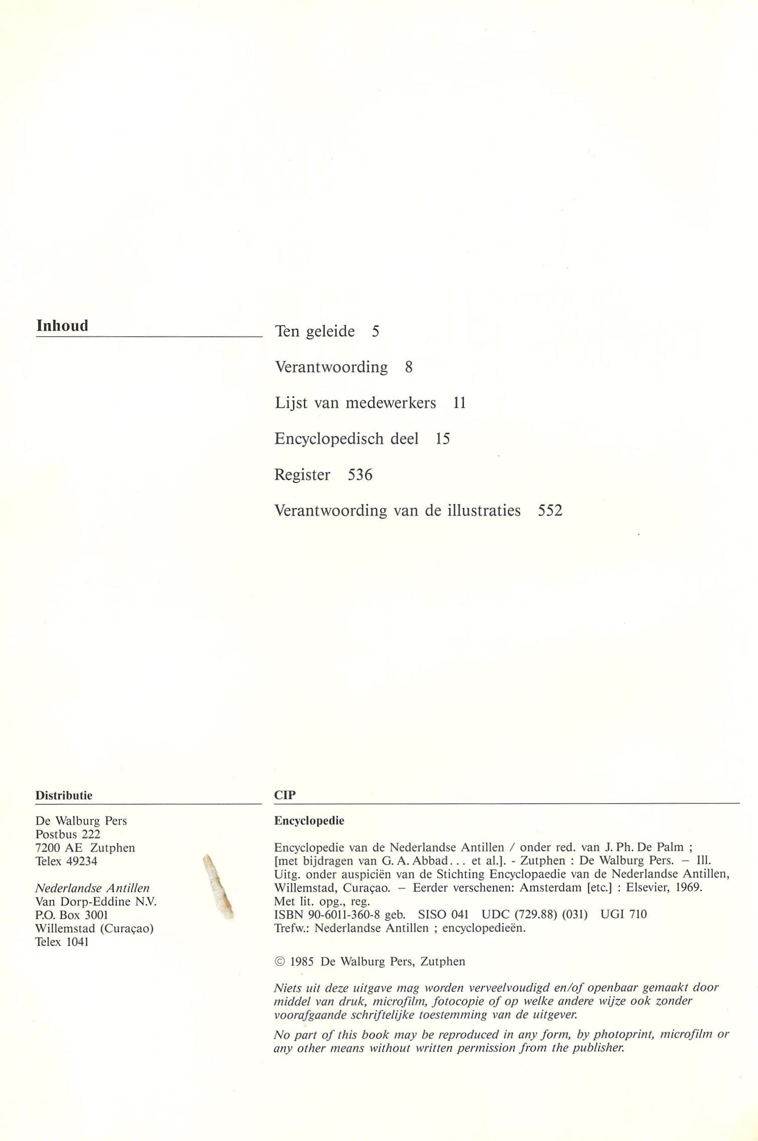Deze encyclopedie bevat duizenden alfabetisch gerangschikte trefwoorden en biedt een veelzijdig overzicht van de eilanden, met aandacht voor hun geschiedenis, geografie, cultuur, economie en samenleving. Het werk is geïllustreerd met foto’s, kaarten en diagrammen. Deze encyclopedie is een waardevolle bron voor onderzoekers, studenten en iedereen die geïnteresseerd is in de eilanden die vroeger behoorden tot de Nederlandse Antillen.