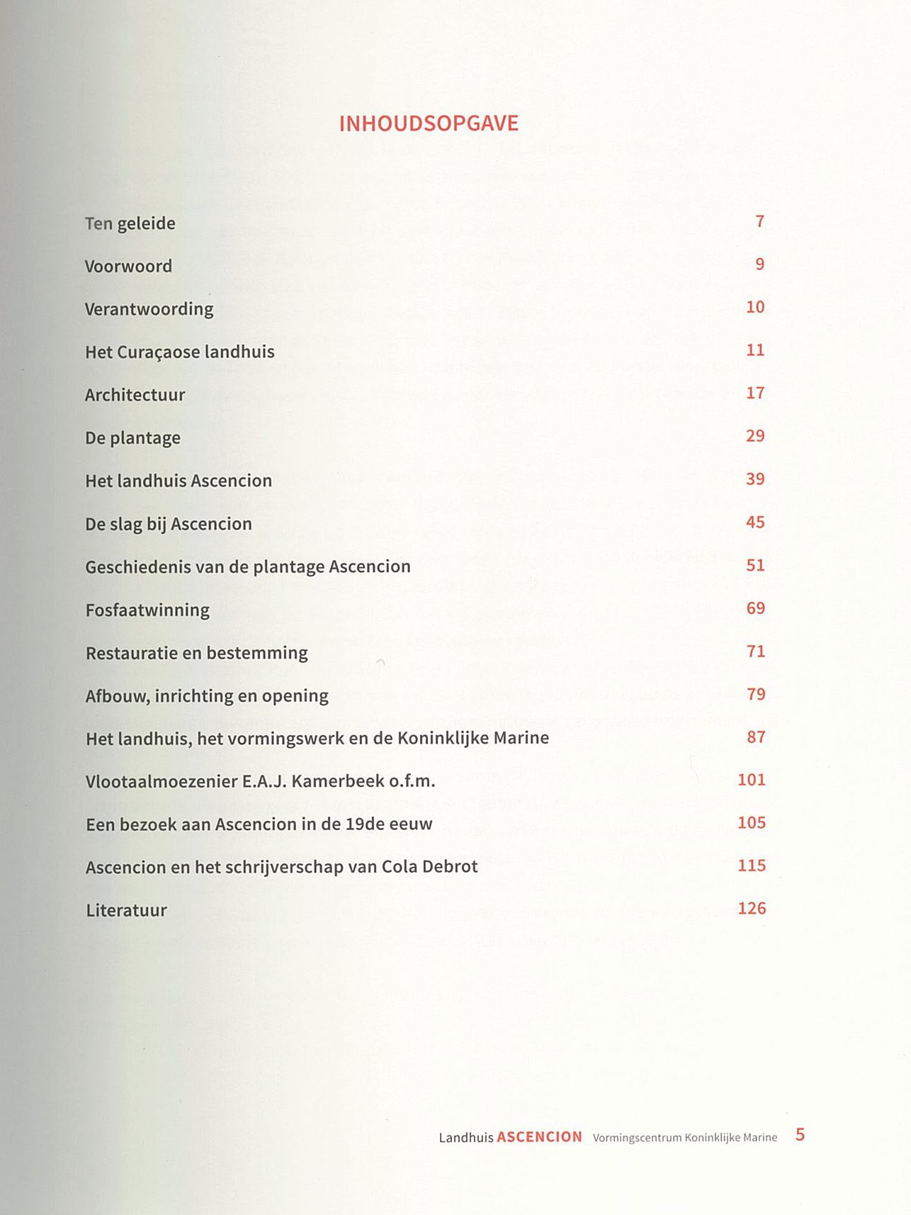 Landhuis Ascencion, oorspronkelijk gebouwd in 1672 als plantagehuis, heeft door de eeuwen heen verschillende functies vervuld. Sinds 1965 dient het als vormingscentrum voor de Koninklijke Marine, waar mariniers en andere defensiemedewerkers worden opgeleid en getraind. Het boek ‘Landhuis Ascencion: Vormingscentrum Koninklijke Marine’ is geschreven door E.A.J. Kamerbeek en J. Mooij, met bijdragen van W.E. Renkema en M.A. Visman. In 2014 werd het gepubliceerd. Dit boek biedt een uitgebreide blik op de geschiedenis en de rol van Landhuis Ascencion als vormingscentrum voor de Koninklijke Marine.