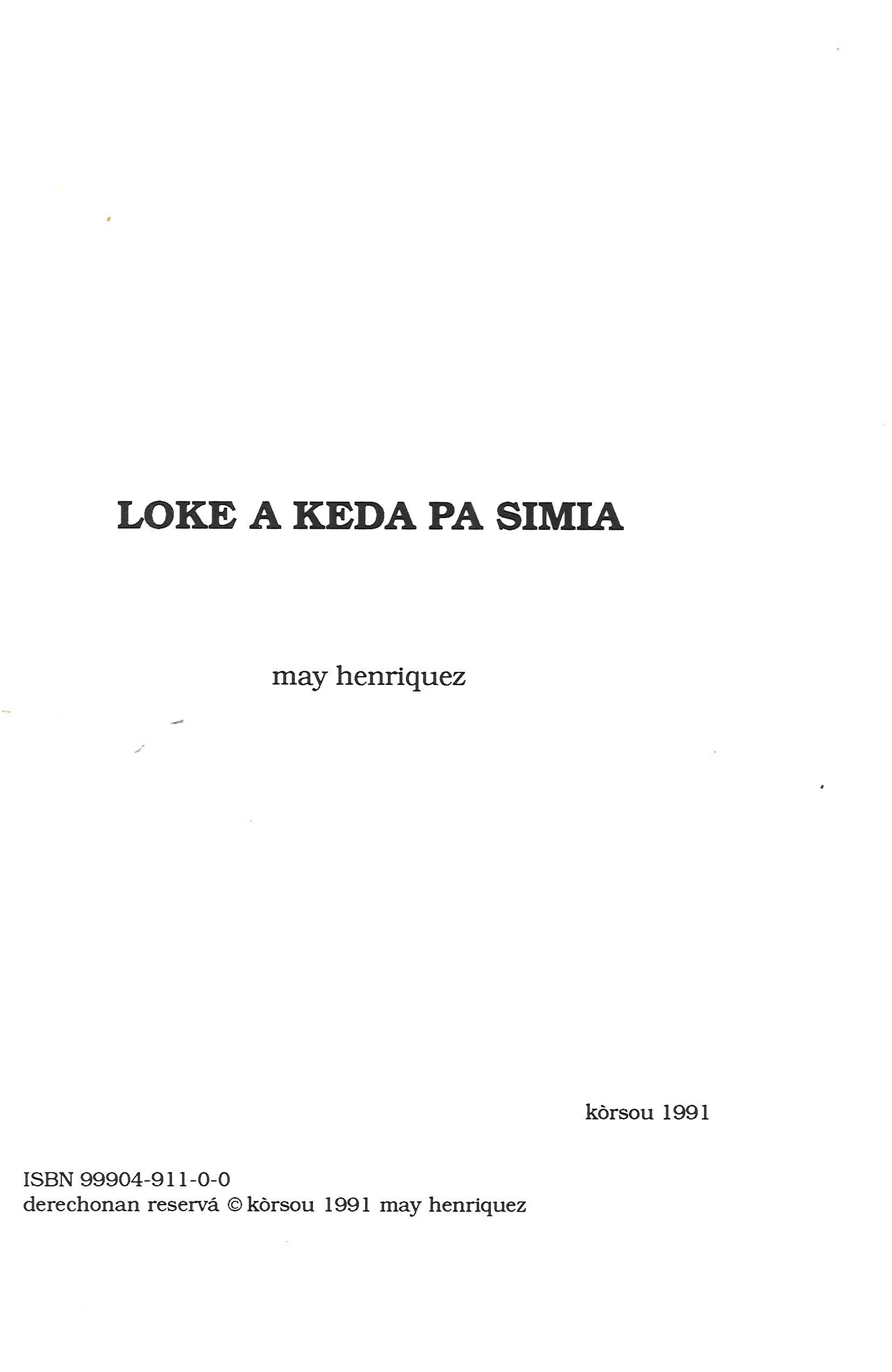 ‘Loke a keda pa simia’ is een werk van May Henriquez, uitgegeven op Curaçao in 1991. Het boek is een voortzetting van haar eerdere publicatie ‘Ta asina? O ta asana?’, waarin ze woorden, uitdrukkingen, grappen en gebruiken van de Sefardische gemeenschap op Curaçao documenteerde. In deze uitgave voegt Henriquez meer woorden en uitdrukkingen toe die hun oorsprong hebben in het Judeo-Spaans, en biedt ze verduidelijking bij enkele termen uit haar eerste boek die niet duidelijk waren voor niet-Sefardische lezers. Het boek dient als een belangrijk document voor het behoud van het culturele en taalkundige erfgoed van de lokale Sefardische gemeenschap.
