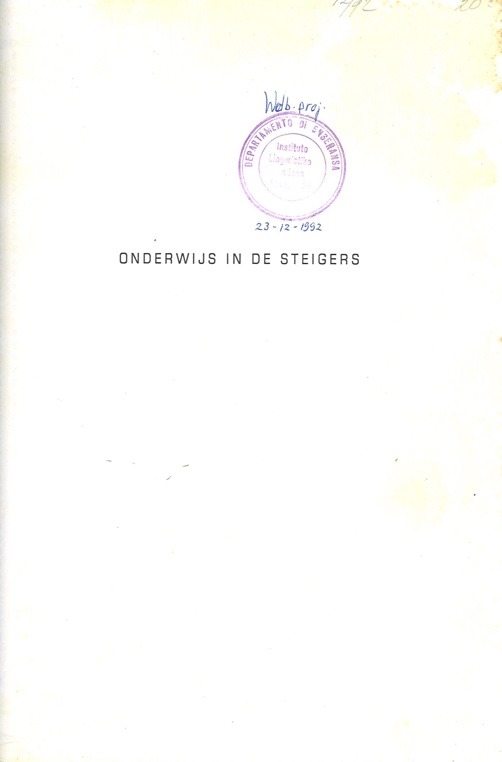 Onderwijs in de Steigers - Titelpagina