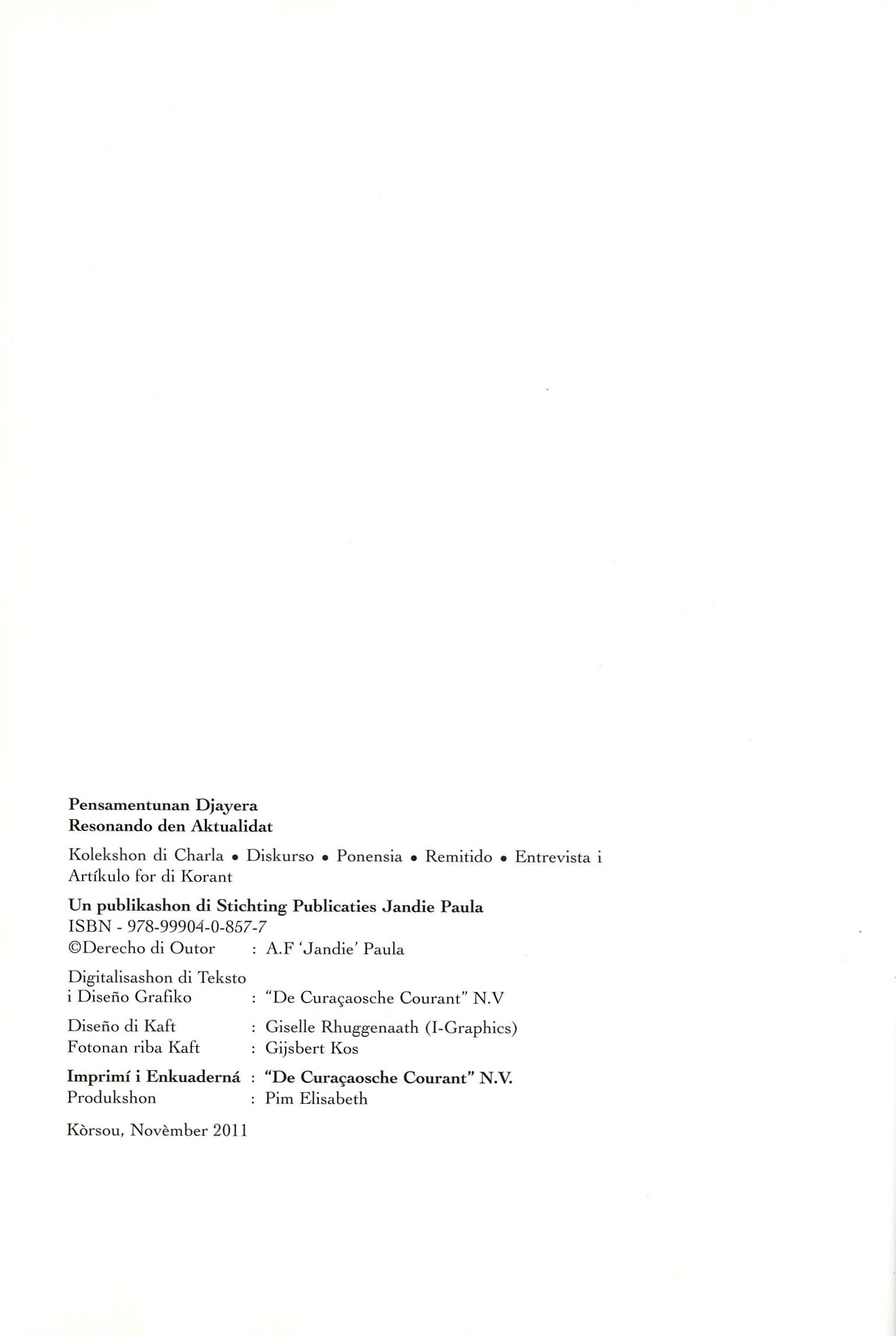 Pensamentunan Djayera - Colophon