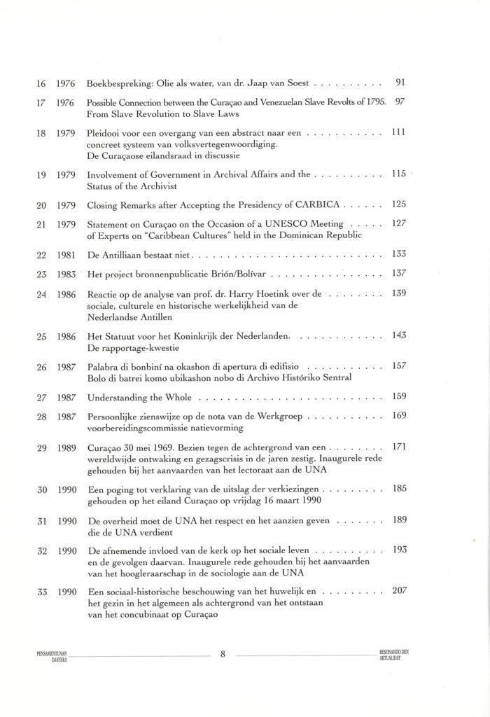 24.- 1986 – Reactie op de analyse van prof. dr. Harry Hoetink over de ….. 139 sociale, culturele en historische werkelijkheid van de Nederlandse Antillen