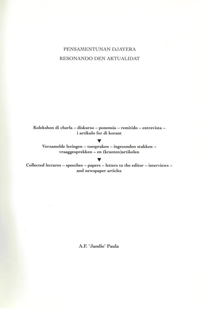 15.- 1976 – Palabra di introdukshon na apertura di week-end di estudio organisá pa Centraal Historisch Archief ….. 89