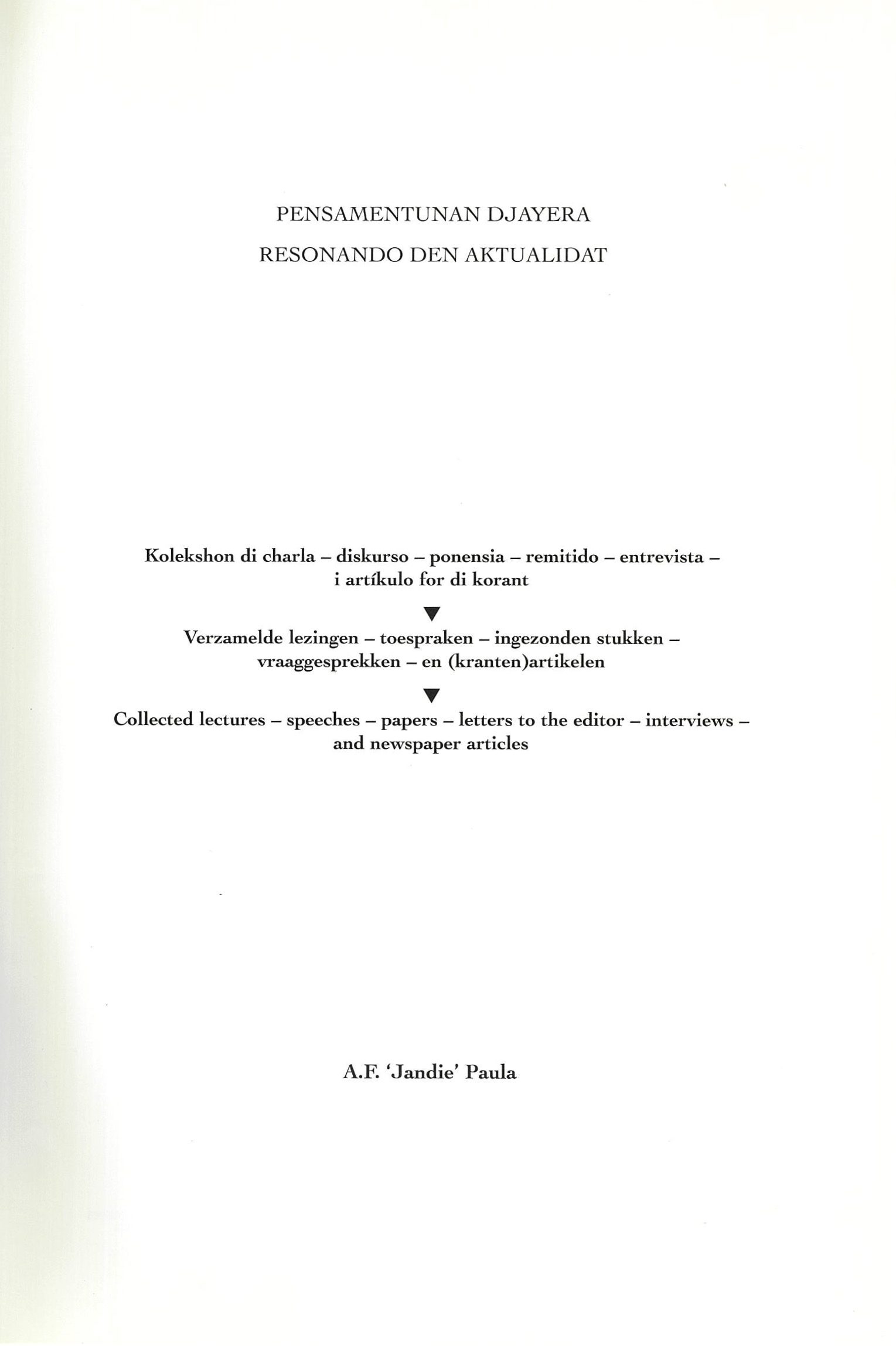 Pensamentunan Djayera - Title Page