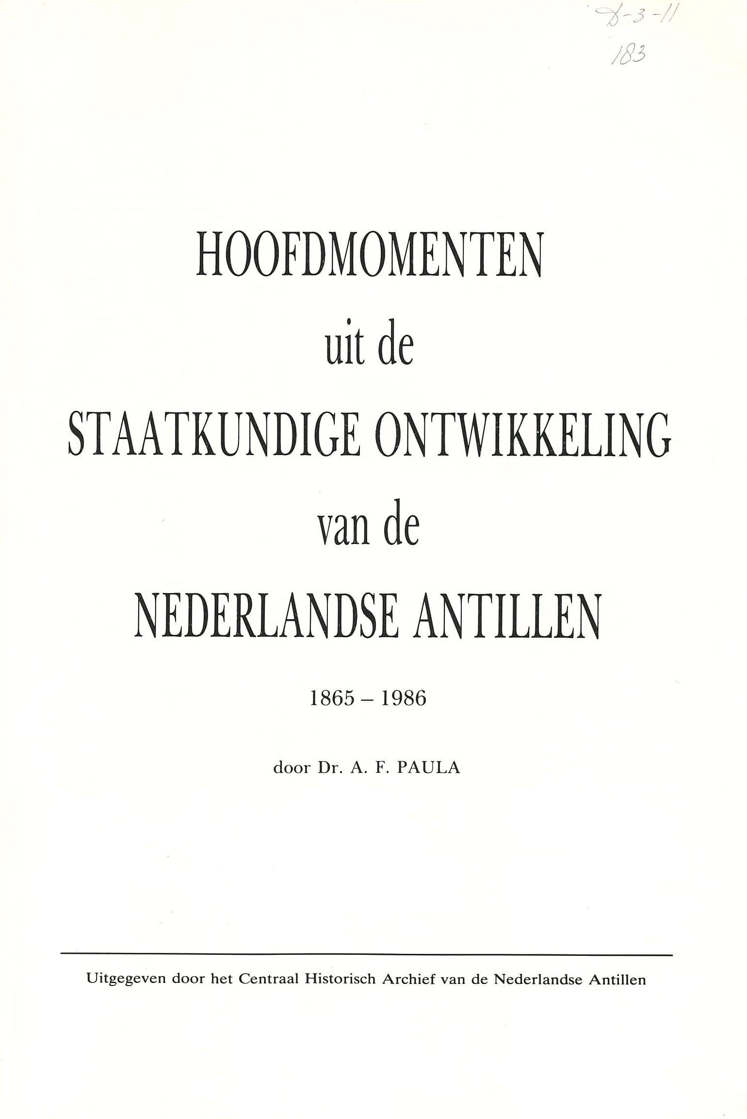 ‘Hoofdmomenten uit de staatkundige ontwikkeling van de Nederlandse Antillen‘, geschreven door Alejandro F. Paula, biedt een helder en beknopt overzicht van de belangrijkste fasen in de constitutionele geschiedenis van de Nederlandse Antillen tussen 1865 en 1986. Als gerenommeerd jurist en voormalig gouverneur van de Nederlandse Antillen, combineert Paula zijn juridische expertise met diepgaande historische kennis om de politieke veranderingen van dit Caribische deel van het Koninkrijk der Nederlanden toegankelijk te maken voor een breed publiek.