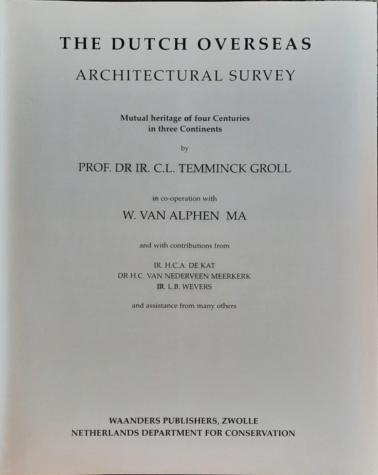 ‘The Dutch Overseas: Architectural Survey – Mutual Heritage of Four Centuries in Three Continents’ is a comprehensive and richly illustrated examination of the architectural legacy resulting from the Netherlands’ global interactions over four centuries. Written by Coenraad Liebrecht Temminck Groll, a distinguished Dutch architect and historian, the book delves into the buildings and urban structures in Asia, America and the Caribbean, and Africa that reflect Dutch influence. Temminck Groll’s work highlights how Dutch architectural styles were adapted to local contexts, creating a unique blend of design elements. The book also discusses the significance of these structures in the cultural identities of their respective regions and their recognition, with some being listed as UNESCO World Heritage Sites.This scholarly work serves as an essential resource for understanding the global impact of Dutch architecture and the enduring legacy of cultural exchange between the Netherlands and various regions worldwide.