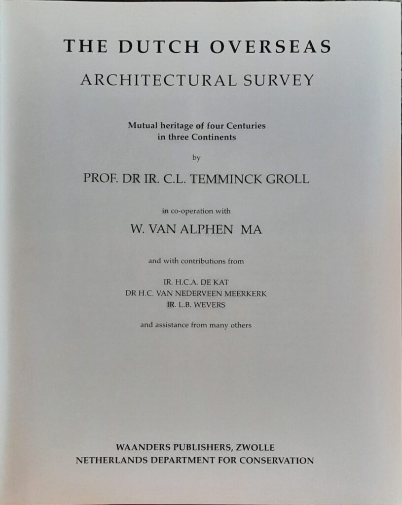 ‘The Dutch Overseas: Architectural Survey – Mutual Heritage of Four Centuries in Three Continents’ is a comprehensive and richly illustrated examination of the architectural legacy resulting from the Netherlands’ global interactions over four centuries. Written by Coenraad Liebrecht Temminck Groll, a distinguished Dutch architect and historian, the book delves into the buildings and urban structures in Asia, America and the Caribbean, and Africa that reflect Dutch influence. Temminck Groll’s work highlights how Dutch architectural styles were adapted to local contexts, creating a unique blend of design elements. The book also discusses the significance of these structures in the cultural identities of their respective regions and their recognition, with some being listed as UNESCO World Heritage Sites.This scholarly work serves as an essential resource for understanding the global impact of Dutch architecture and the enduring legacy of cultural exchange between the Netherlands and various regions worldwide.